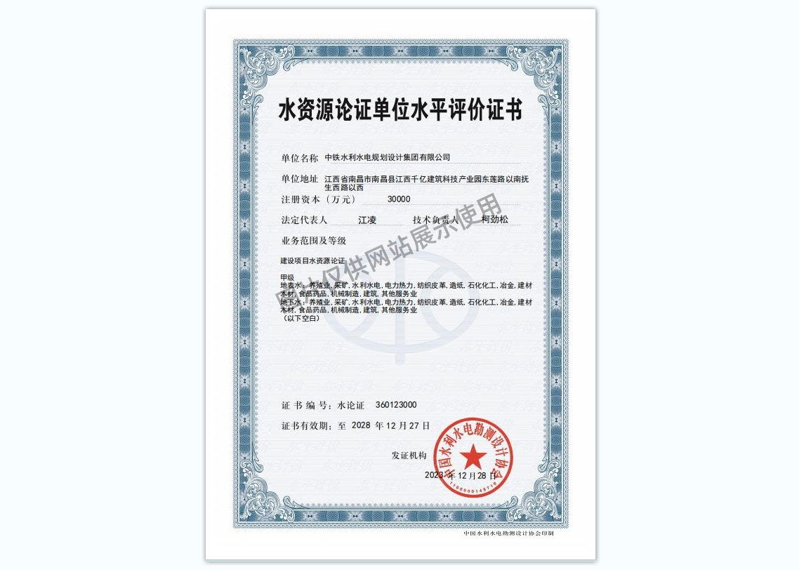 • 水资源论证单位水平评价证书