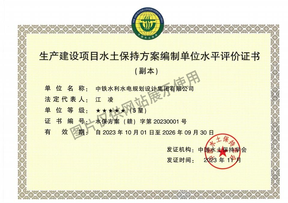 • 水保方案编制单位水平评价证书(五星)