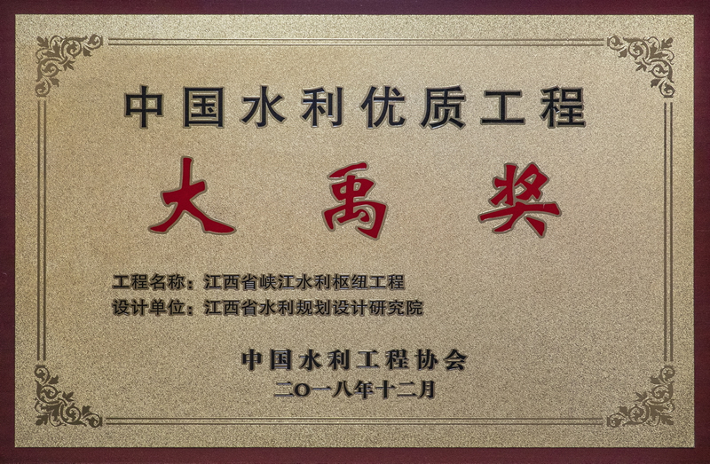 • 大禹奖:江西省峡江水利枢纽工程
