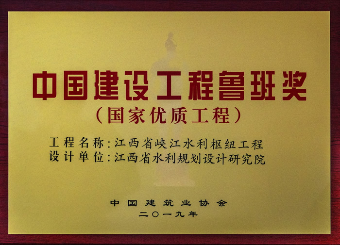 • 鲁班奖:江西省峡江水利枢纽工程