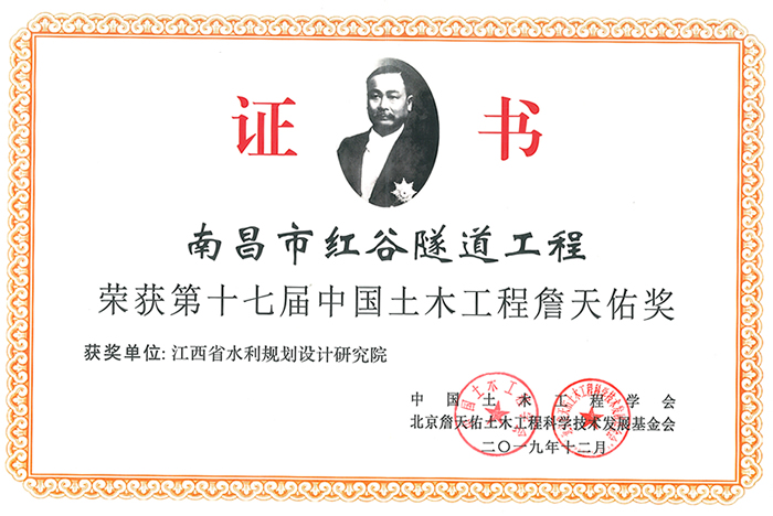 • 詹天佑奖:南昌市红谷隧道工程