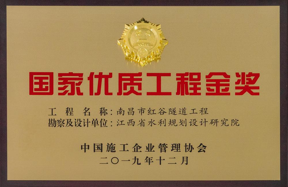 • 国家优质金奖:南昌市红谷隧道工程