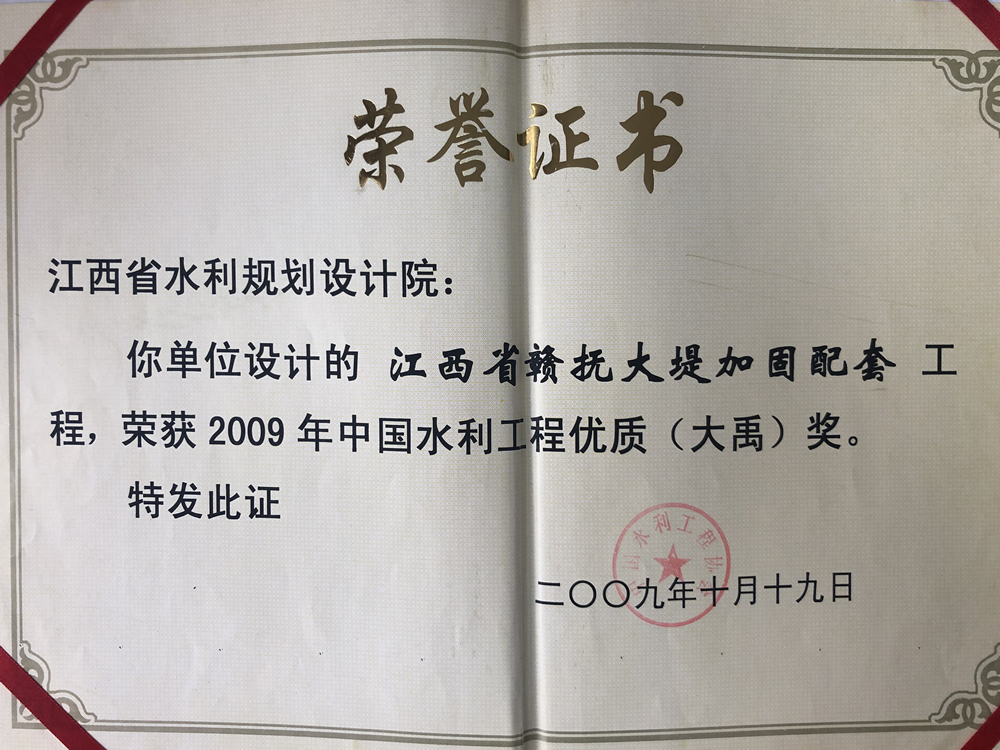 • 大禹奖:江西省赣抚大堤加固配套工程