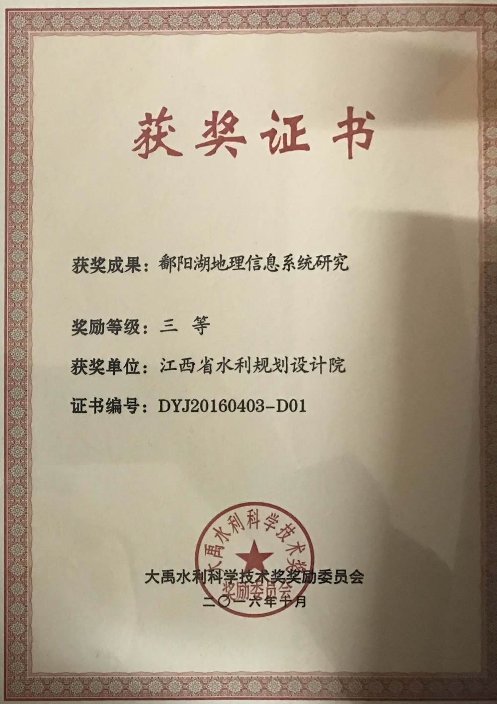 • 大禹奖:鄱阳湖地理信息系统研究