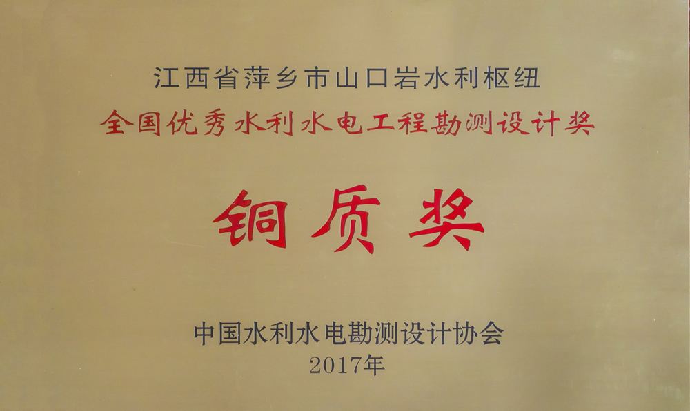 • 全国优秀勘测设计铜奖:萍乡市山口岩水利枢纽