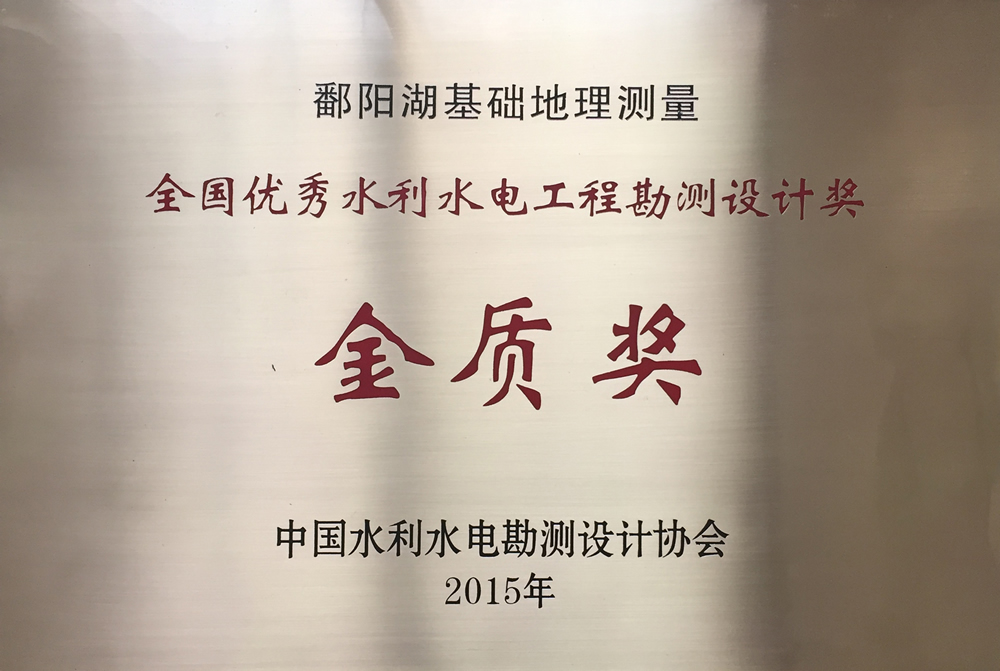• 全国优秀勘测设计金奖:鄱阳湖地理信息测量