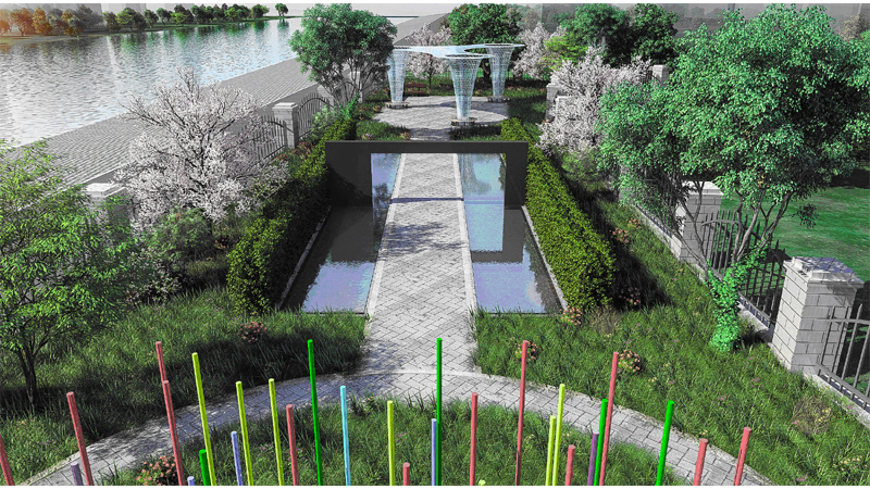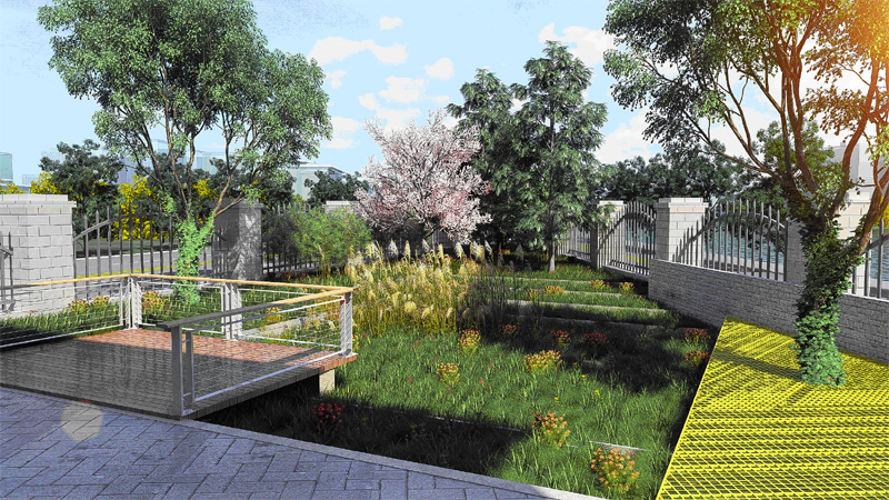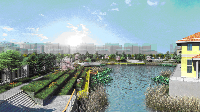 蔡家桥电排站“雨水花园”项目位于江西省南昌市新建区乌沙河畔,项目占地面积19210.2平方米。利用海绵城市雨水花园的生态原理,通过对雨水的“渗、滞、蓄、净、用、排”各环节的组合优化,使得场地的雨水峰值得以缓解和推迟,为泄洪排涝争得了宝贵的时间,而且又使得雨水更多的留在场地中以回收利用。塑造绿色生态形象:以生态学原理为指导构建绿地系统,充分考虑景观水体的运用及人工净化系统的辅助。根据植物的共生、多样性以及竞争效应,因地制宜布置乔、灌木、草本、藤本、水生植物,使之相互协调,营造一个人与自然和谐共生、良性互动的生态环境。