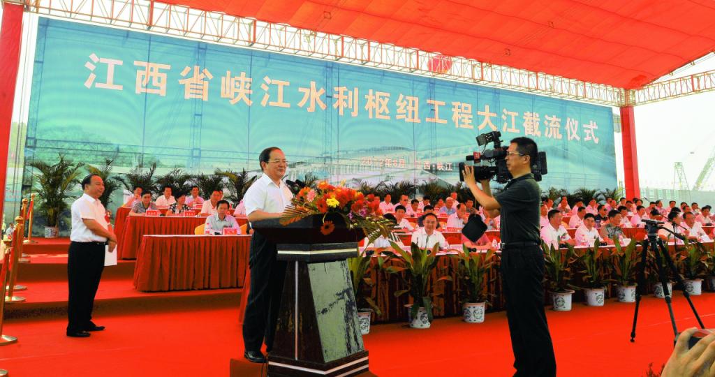 2010年8月,时任江西省省长鹿心社参加由我司主持设计的峡江水利枢纽工程大江截流仪式。
