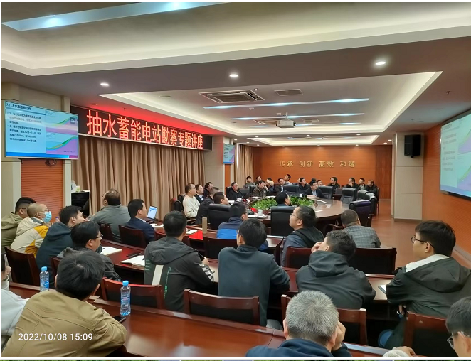 按照《地勘润泽党支部“喜迎二十大,勘察建新功”活动方案》的部署安排,打造“党建+抽蓄勘察”的地勘特色,同时为进一步加快集团公司抽水蓄能业务拓展,提升集团公司技术人员抽蓄电站勘察设计技术水平,借助地勘院与华东院合作开展抽水蓄能勘察项目契机,10月8日下午,集团公司邀请华东勘测设计研究院一级专家周会信、福建公司勘察事业部副总工程师巴刚进行抽水蓄能电站勘察专题讲座。