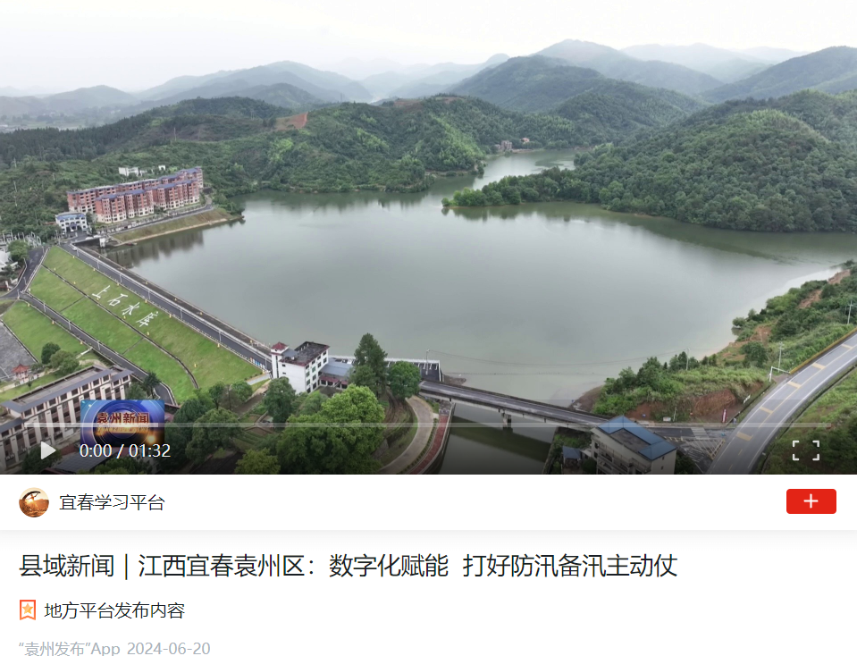 近日,宜春市融媒体中心专题报道了袁州区飞剑潭水资源开发利用中心智慧防汛工作,高度肯定了中铁水利信息开发的水库运行管理矩阵平台,为袁州区打好防汛备汛主动仗提供了有力支撑。