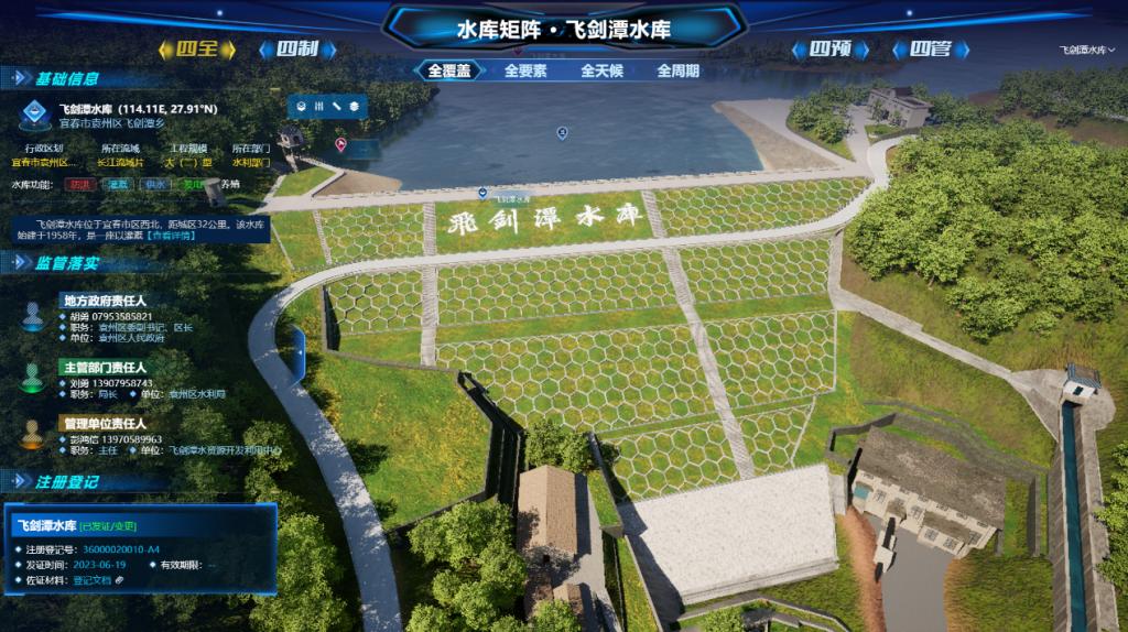 飞剑潭水库运行管理矩阵平台是中铁水利信息针对飞剑潭水资源开发利用中心“四个四”管理需求自主研发的智能化信息平台,建立水库全覆盖、全要素、全天候、全周期“四全”管理,完善体制、机制、法治、责任制“四制(治)”体系,强化预报、预警、预演、预案“四预”措施,加强除险、体检、维护、安全“四管”工作建设。平台搭建了飞剑潭水库数字孪生场景,通过接入雨量、流量、水位、库容以及大坝安全监测数据,实时掌握水库水情安全信息。在防汛四预方面,平台搭建了水库水文预报模型,通过接入气象数据,进行未来3到72小时内的水文预报,能提前获知水位上涨情况,并在有超汛限风险时自动预警。管理人员可根据计算结果进行提前腾出库容、发布预警信息等应急操作,保障水库及下游群众安全度汛。