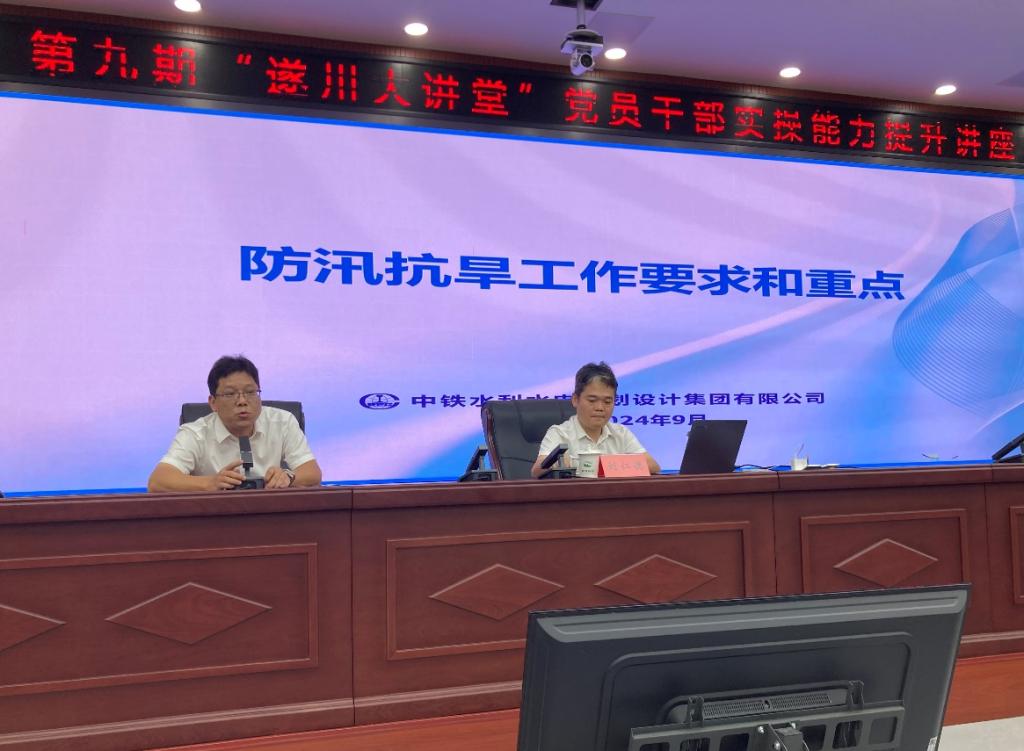 9月7日,由遂川县委、县政府举办的第九期“遂川大讲堂”党员干部实操能力提升讲座培训会在县行政中心召开。会议由该县分管副县长主持。建洪咨询公司牵头,我司防汛专家、水利水电院总工刘仁德受邀作主题为“防汛抗旱工作要求和重点”的授课。全县23个乡镇、县河长制责任单位、县防汛抗旱成员单位和县水利局部分干部参会,共计96人参加培训。