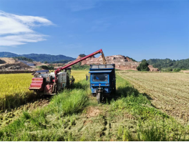 乐平水利枢纽抬田工程首茬再生稻现场收割情况
